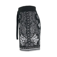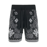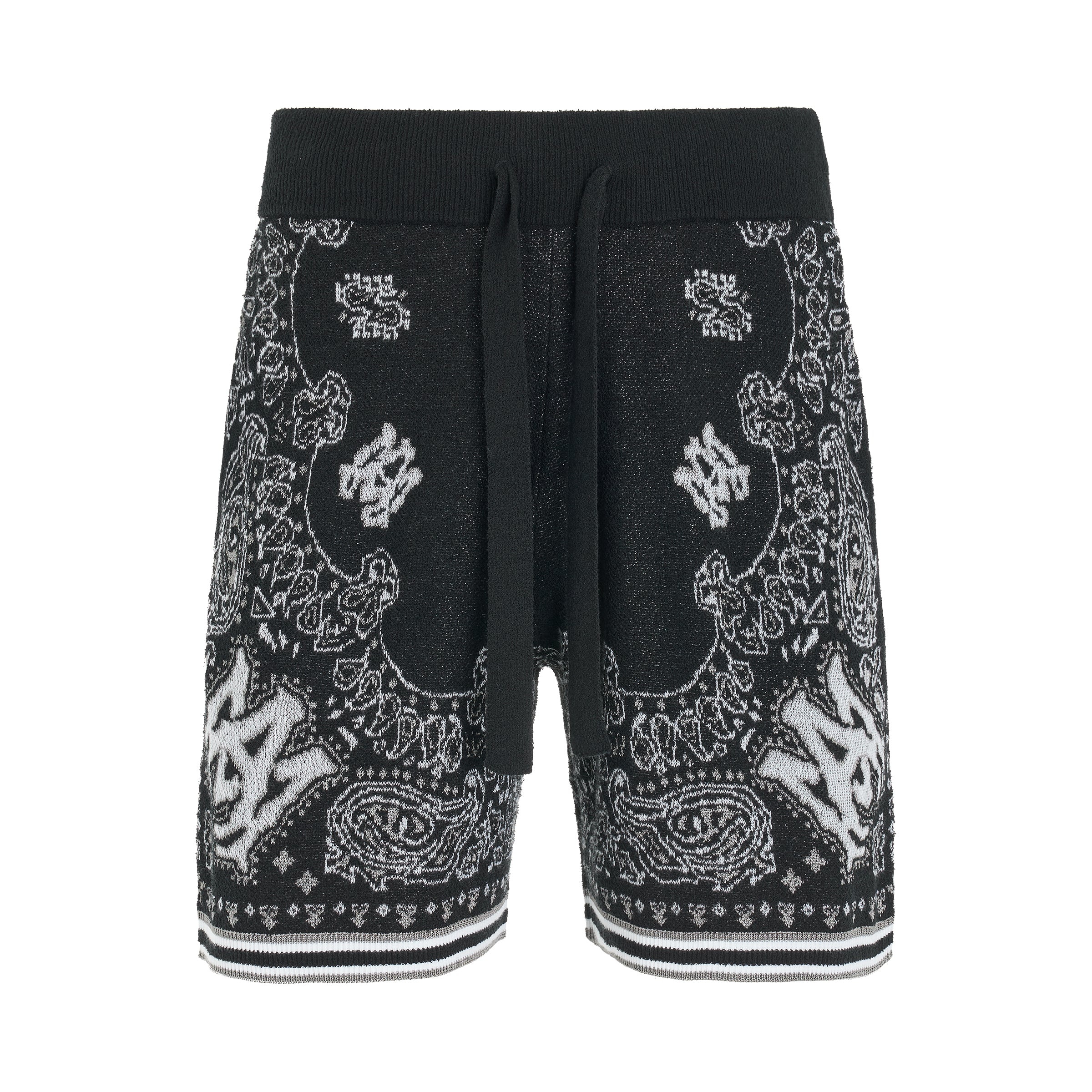 Introducing our Bandana Shorts in Black - the perfect addition to your wardrobe. These shorts are not only stylish, but also incredibly comfortable, thanks to their lightweight and breathable fabric. The black bandana print adds a touch of edginess to any outfit. - Composition: 67% Cotton, 33% Polyamide - MA logo jacquard - Elastic waistband with drawstrings - Side pockets - Back leather logo patch - Striped ribbed hems SKU: AMKNSH1001 001