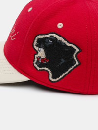 HOUSE ICONS ARE REPRISED FOR PRE-SPRING 2025 WITH GRAPHICS THAT DRAW FROM COLLEGIATE ICONOGRAPHY AND CELEBRATE AMIRI'S HOME OF LOS ANGELES. THE AMIRI PANTHER TWO TONE HAT FEATURES EMBROIDERY AND CHENILLE APPLIQUE AND IS FINISHED WITH A CURVED LEATHER BRIM, EMBROIDERED EYELETS, AND BUCKLE FASTENING. PRE-SPRING 2025 COLLECTION MADE IN ITALY SHELL:75% WOOL, 25% NYLON, CONTRAST: 100% LEATHER EACH PIECE IS METICULOUSLY CRAFTED AND INHERENTLY UNIQUE. SLIGHT VARIATIONS IN THE ARTWORK ARE A NATURAL RESULT OF THE PRINTING PROCESS AND CONTRIBUTE TO THE DISTINCTIVE CHARACTER OF THIS PRODUCT. STYLE:AMHACP1028-644 SIZE & FIT PRODUCT MEASUREMENTS: CROWN CIRCUMFERENCE: 22.875“ CROWN HEIGHT: 3.75“ VISOR WIDTH: 2.75“ PLEASE CONTACT FOR ADDITIONAL INFORMATION.