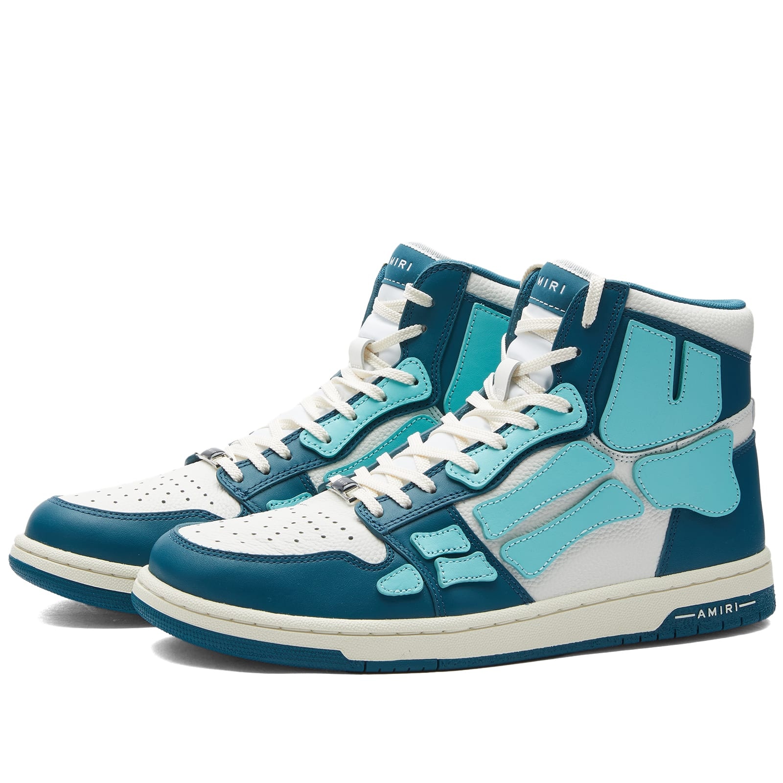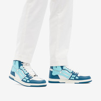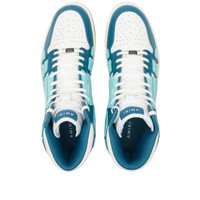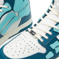 With its ready-to-wear collections designed and manufactured in downtown L.A., Amiri continues to marry refined craftsmanship with skate and street culture. At the centre of each collection, expect to see the brand’s unique bone motif, here it’s hand cut and sewn on these high top sneakers. Crafted with a leather upper, the striking skelton detailing appears in contrasting suede. With overlays and a perforated toe box, the label's logo is printed in a metallic font on the heel tab. - Leather Upper - Lace Closure - Rubber Outsole