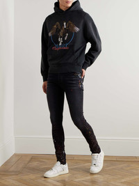 AMIRI's hoodie has the look and feel of a vintage gem. Cut from cotton-blend jersey, it's printed with faded artwork featuring a flying horse accompanied by the brand's name and home state. Size & Fit - Fits true to size. Take your normal size - Designed for a relaxed fit - Mid-weight, slightly stretchy fabric - Model is shown wearing a M - Model measures: chest 38"/ 96cm, height 6'3"/ 191cm Details & Care - Multicoloured cotton-jersey - 100% cotton; trim: 95% cotton, 5% elastane - Dry clean