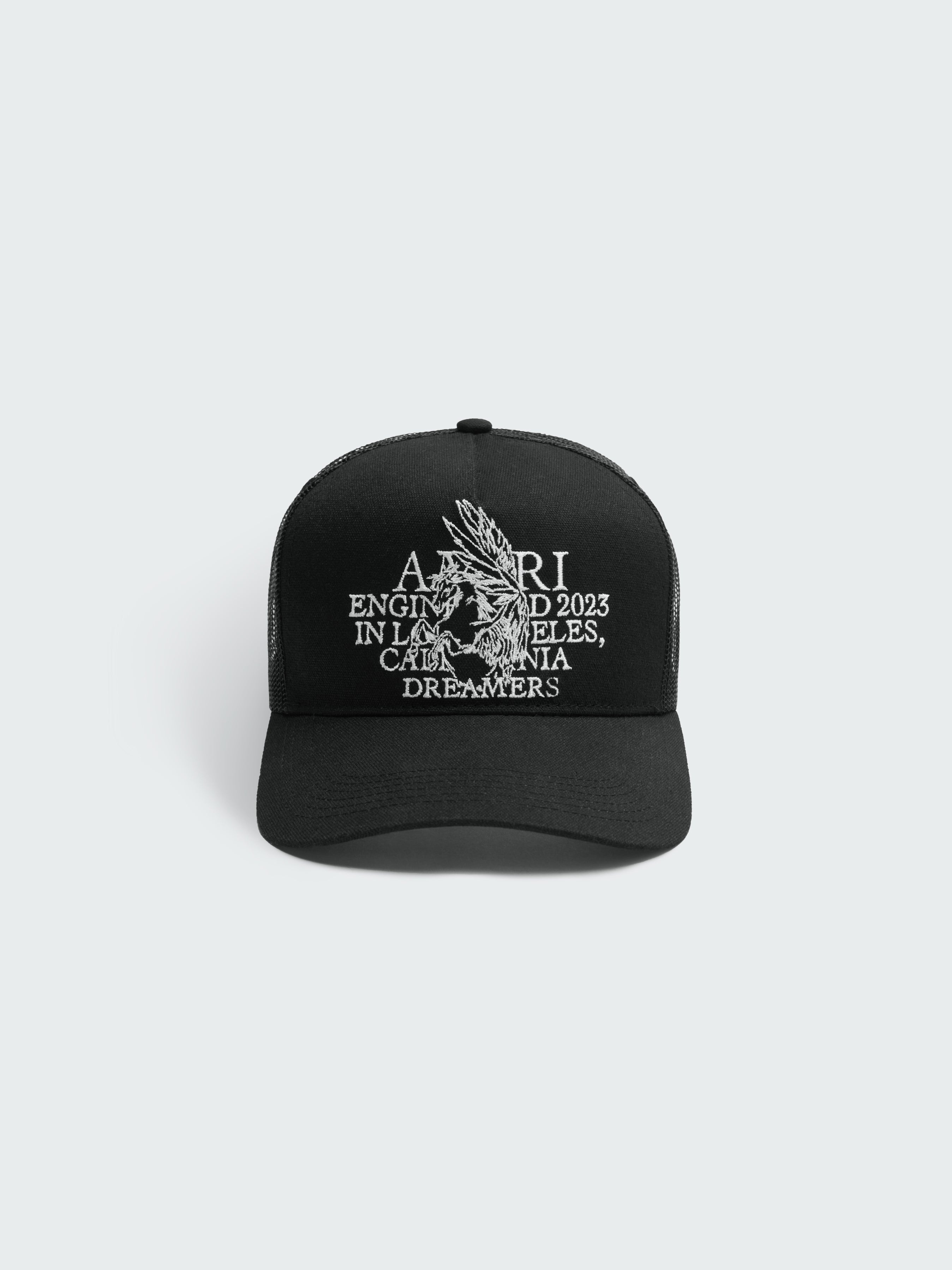 SS23 PEGASUS TRUCKER IN BLACK CANVAS MADE IN CHINA CANVAS / MESH DETAILS & CARE 100% COTTON, 100% MESH, LINING: 100% TENCEL SPOT CLEAN