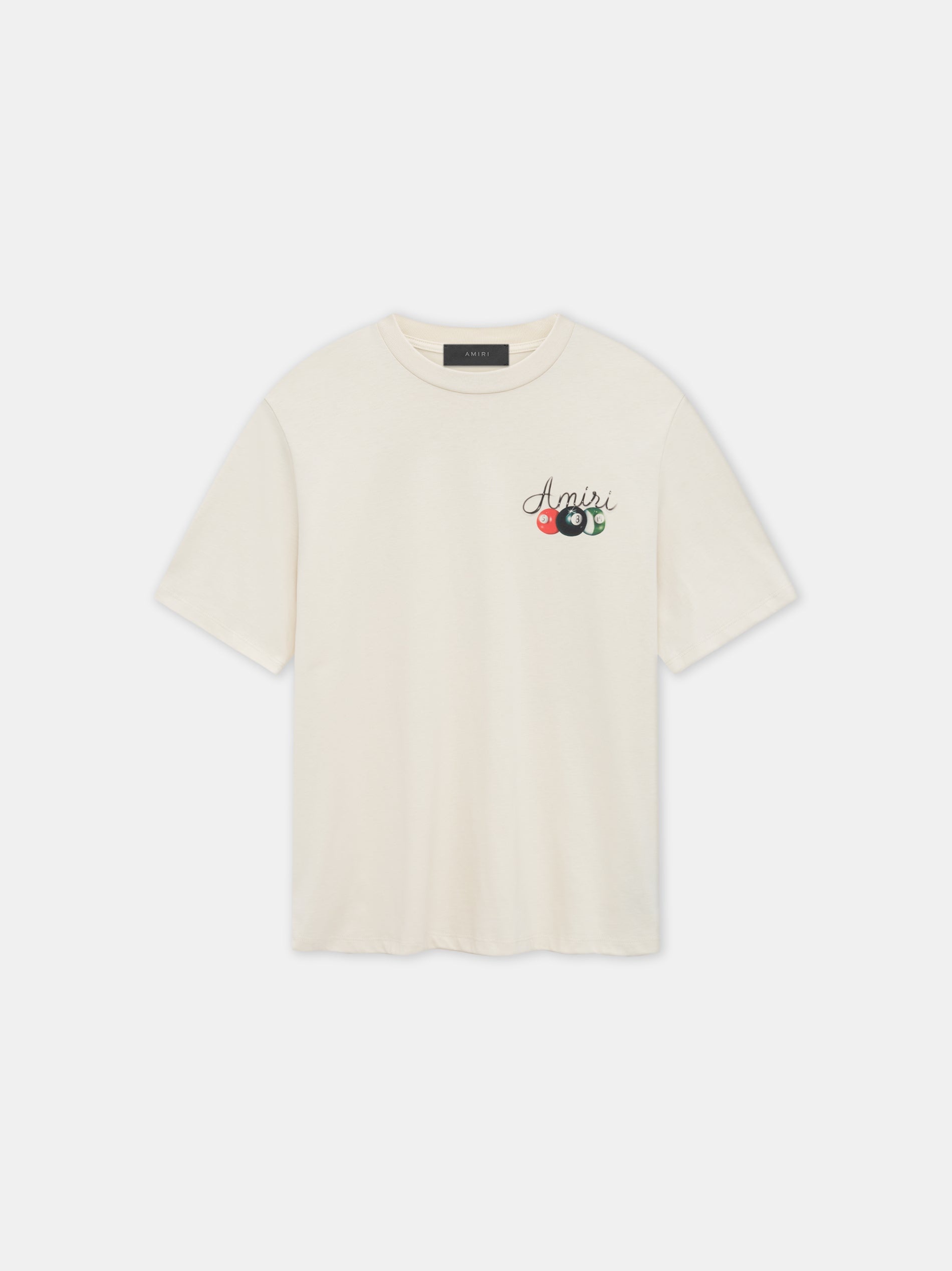 FOR PRE-SPRING 2025, MOTIFS ARE ADAPTED FROM HOLLYWOOD AFTER HOURS, WHERE YOUNG IDOLS ESCAPE THE BRIGHT LIGHTS FOR THE POOL HALLS OF SUNSET BOULEVARD. THE AMIRI POOL CUE TEE IN COTTON FEATURES THE SEASON'S POOL HALL GRAPHIC IN AN AIRBRUSH TREATMENT ON FRONT AND BACK. PRE-SPRING 2025 COLLECTION MADE IN ITALY 100% COTTON STYLE:AMJYTE1135-271 SIZE & FIT PRODUCT MEASUREMENTS (SIZE “M”): CHEST: 22" SHOULDER: 18.5" LENGTH: 28" SLEEVE LENGTH: 10"