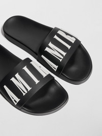PF22 COLLECTION AMIRI LOGO SLIDES RUBBER LOGO MADE IN CHINA ONLY AVAILABLE IN FULL SIZES. CHOOSE YOUR NEAREST WHOLE SIZE IF YOU WEAR A HALF SIZE 100% RUBBER WIPE CLEAN