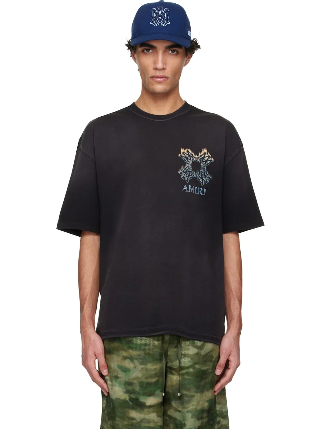 Cotton jersey T-shirt. · Fading throughout · Rib-knit crewneck · Logo graphic printed at chest and back · Dropped shoulders Supplier color: Black Body: 100% cotton. Trim: 95% cotton, 5% elastane. Made in Italy 261886M213033