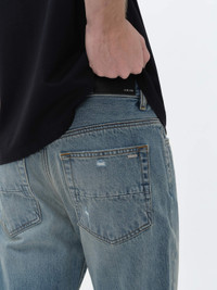 CONTINUING A REVIVAL OF SIGNATURE PIECES FROM THE HOUSE'S ARCHIVE, THE HEM OF THESE JEANS ARE RELEASED AFTER WASHING IN THE STYLE OF AMIRI'S DEBUT SEASON DENIM. DIY IN SENSIBILITY, THESE JEANS ARE CRAFTED WITH CLASSIC FIVE-POCKET CONSTRUCTION AND ARE SPECIALLY WASHED FOR A WELL-WORN VINTAGE FEEL. THESE JEANS ARE ENVISIONED FOR EVERYDAY WEAR, PAIRING EFFORTLESSLY WITH HOUSE TEE AND KNITWEAR OFFERINGS. SPRING-SUMMER 2024 COLLECTION MADE IN USA 100% COTTON DRY CLEAN STYLE:AMDNGH1013-412 SIZE & FIT MODEL IS WEARING SIZE "29" MODEL MEASUREMENTS: HEIGHT: 6'1.5 CHEST: 35.5" WAIST: 27.5" PRODUCT MEASUREMENTS: WAIST: 31.5" RISE: 12" HIP: 39.5" INSEAM: 34"