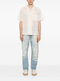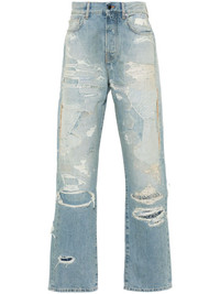 Repaired straight-leg jeans Highlights - Light blue - Cotton - Washed denim - Distressed effect - Ripped detailing - Contrast stitching - Belt loops - Classic five pockets - Rivet detailing - Full-length - Logo patch to the rear - Silver-tone logo plaque to the rear - Straight leg - Front concealed fly and button fastening Made in Italy Composition Lining: Polyester 65%, Cotton 35% Outer: Cotton 100% SIZE & FIT Model measurements Height 6 ft 2 in(1.87 m) Bust/Chest 36.41 in(92.5 cm) Hips 35.43 in(90 cm) Waist 29.52 in(75 cm) FittingInformation Designed with a straight leg, these jeans allow for an unrestricted and comfortable fit over the leg Sturdy and hard-wearing, this denim piece offers no stretch This piece fits true to size – take your usual size