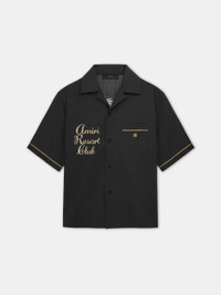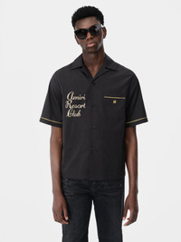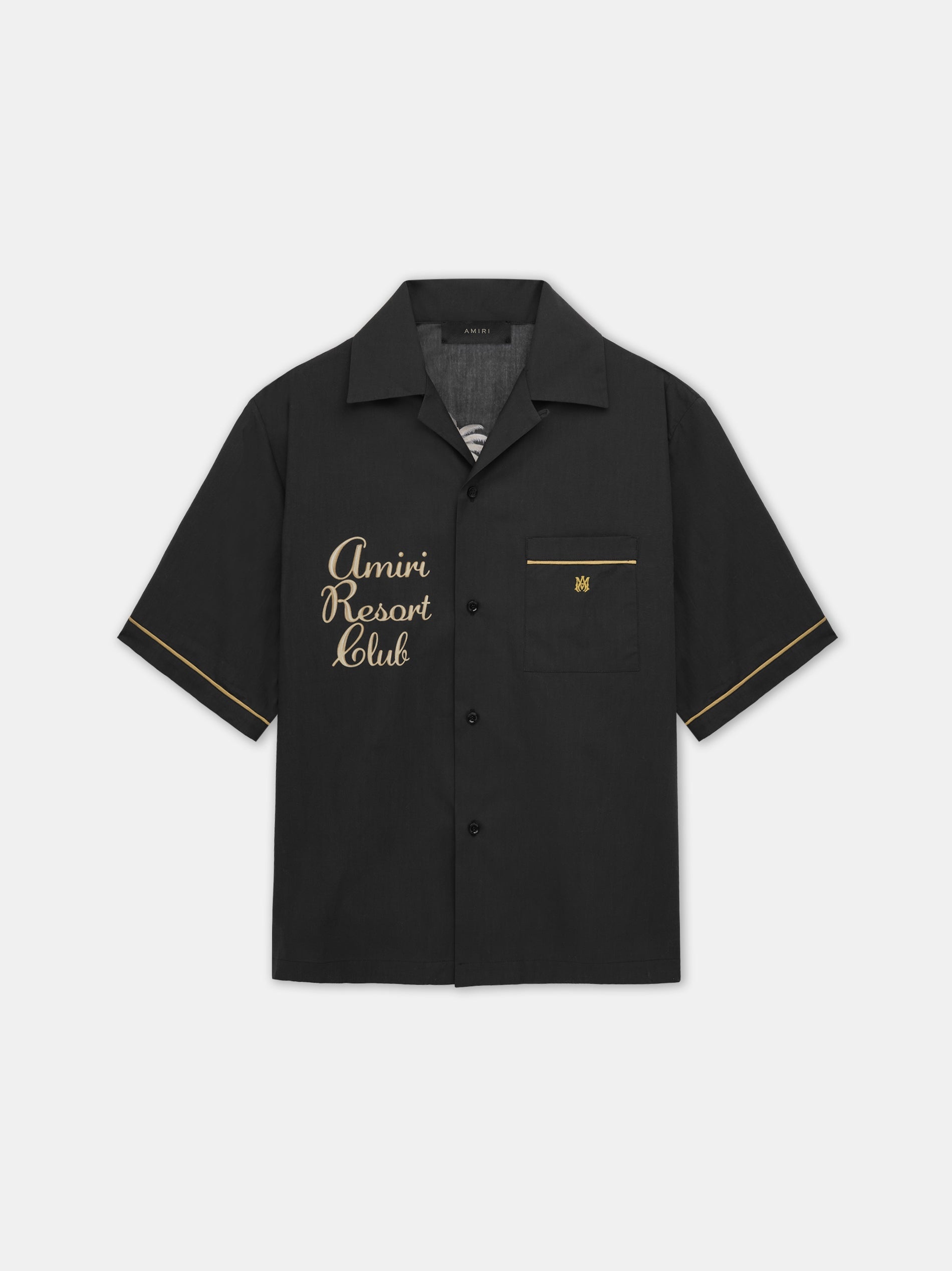 FOR PRE-FALL 2024 MENSWEAR, THE AMIRI RESORT CLUB IS INTRODUCED AS A FICTIONALIZED FIVE-STAR DESTINATION SET AMID TROPICAL PALM TREES. THE RESORT CLUB EMBROIDERED SHIRT IS DECORATED WITH EMBROIDERED LUREX ACCENTS AND FINISHED WITH CONTRAST PIPING, BUTTON-DOWN CLOSURE, AND THE MA ICON AT CHEST. PRE-FALL 2024 COLLECTION MADE IN ITALY 100% COTTON