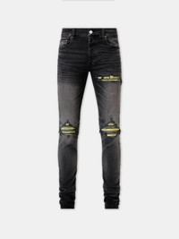 FOR PRE-FALL 2025, DENIM BECOMES A CANVAS FOR INTRICATE AND NOVEL FABRICATION. THE MX1 INTERNATIONAL JEAN IS HAND-DISTRESSED, REPAIRED WITH PLEATED BANDANA PRINT, AND FINISHED WITH CLASSIC FIVE-POCKET DETAILING. PRE-FALL 2025 COLLECTION MADE IN USA 92% COTTON, 6% ELASTOMULTIESTERE, 2% ELASTANE THIS GARMENT HAS UNDERGONE A SPECIAL PROCESS WHICH RESULTS IN INTENTIONAL VARIATIONS OF SHADING AND COLOR, AND ADD TO THE PIECE'S UNIQUE CHARACTERISTICS. THIS MAY LEAD TO BLEEDING OR DYE TRANSFER. PLEASE USE CAUTION WHEN WASHING OR DRY-CLEANING THIS ITEM STYLE:AMDNSY1154-051 SIZE & FIT MODEL IS WEARING SIZE 30 MODEL MEASUREMENTS: HEIGHT: 6’2” CHEST: 38" WAIST: 28" HIP: 34.5" PRODUCT MEASUREMENTS (SIZE 30): WAIST: 30.5" RISE: 10.25" HIP: 37" INSEAM: 34"