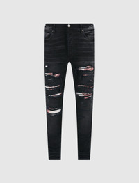 Skinny-fit denim jeans. Five-pockets. Abrasions and distressing throughout. Tie-dye patches. Button-fly closure at front. - 92% Cotton, 6% Elastomultiester, 2% Elastane SKU: SS22MDS006-023