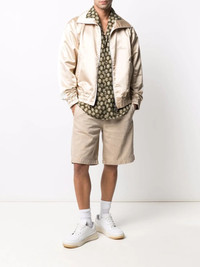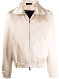 Zip Track Jacket "Beige" Expertly crafted from lightweight Japanese cotton and detailed with a luxurious sateen finish, this track jacket by AMIRI boasts a sports-inspired silhouette that's reminiscent of the brand's skate culture influences. Highlights - Champagne/white - Cotton-blend - Stripe detailing - Embroidered logo at the chest - Logo patch to the rear - High neck - Long sleeves - Front zip fastening - Two side slit pockets Made in Italy Composition Cotton 70%, Rayon 30% Washing instructions Dry Clean Only