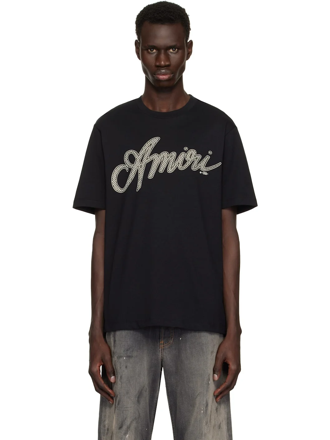 Cotton jersey T-shirt. · Rib-knit crewneck · Logo graphic printed at front · Dropped shoulders Supplier color: Black 100% cotton. Made in Italy 251886M213070