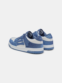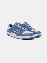 PRE-FALL 2024 FOOTWEAR RECASTS THE HOUSE'S ICONIC SKEL TOP SILHOUETTE IN NEW, SEASONAL FABRICATIONS. THE SHIMMER SKEL TOP LOW IS CRAFTED WITH LEATHER AND GLITTER PANELING ON A TWO-TONE RUBBER SOLE WITH PERFORATED DETAILING AND SIGNATURE GRAPHICS. PRE-FALL 2024 COLLECTION MADE IN VIETNAM UPPER: LEATHER / TETORON, CONTRAST UPPER: 50% POLYESTER, 50% NYLON