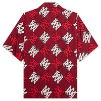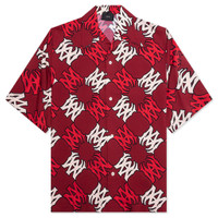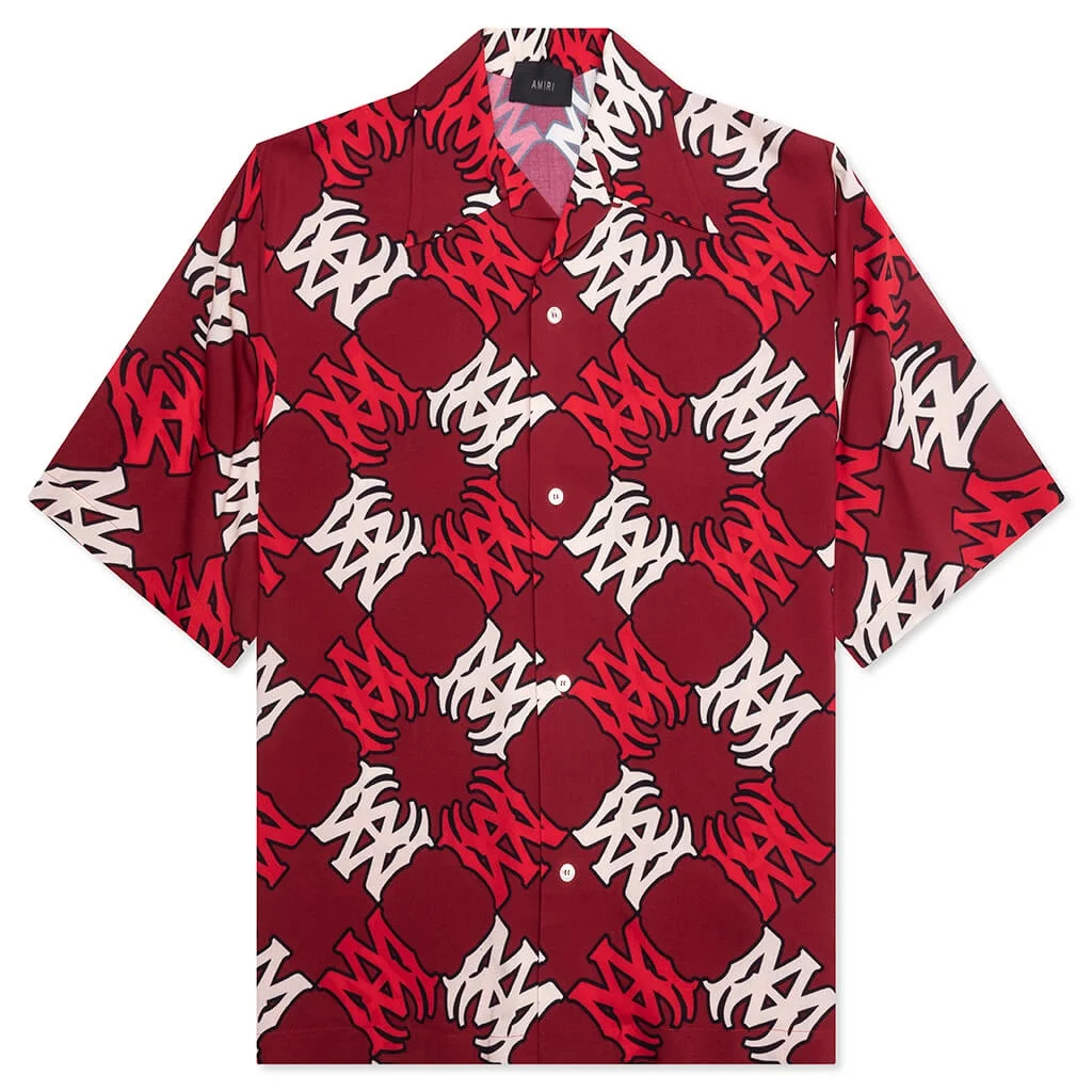 The MA Quad Bowling Shirt in Deep Red is crafted from lightweight viscose, offering a smooth and breathable feel. Featuring a camp collar and button-up closure, it’s adorned with an all-over Amiri Quad print for a bold, statement-making look. Perfect for relaxed yet elevated styling. - 100% Viscose - Camp collar - Button up closure - All over Amiri Quad print - Style No: AMSTCA1080-644