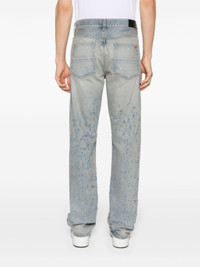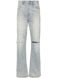 blue cotton denim stonewashed faded effect ripped detailing whiskering effect at the thighs classic five pockets logo patch to the rear logo-debossed buttons straight leg button fly fastening Size & Fit Model Measurements: Height: 1.85 m Bust/Chest: 92.0 cm Hips: 91.0 cm Waist: 74.0 cm Model wears size 32 Fabric and Care Designer Style ID: PS24MDF004 Designer Colour: 406 ANTIQUE INDIGO Composition: Cotton 100% Washing instructions: Dry Clean Only Made in United States