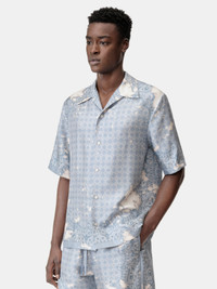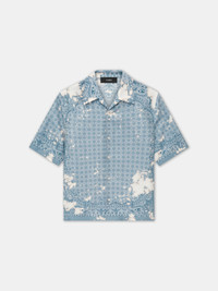 PRE-FALL 2025 REIMAGINES THE HOUSE'S SIGNATURE BANDANA PRINT IN A BLEACH RENDITION STEEPED IN DIY SENSIBILITIES. THE BLEACH BANDANA BOWLING SHIRT IS FINISHED WITH A NOTCHED COLLAR AND BUTTON-DOWN CLOSURE. PRE-FALL 2025 COLLECTION MADE IN ITALY 100% SILK THIS GARMENT HAS UNDERGONE A SPECIAL PROCESS WHICH RESULTS IN INTENTIONAL VARIATIONS OF SHADING AND COLOR, AND ADD TO THE PIECE'S UNIQUE CHARACTERISTICS. THIS MAY LEAD TO BLEEDING OR DYE TRANSFER. PLEASE USE CAUTION WHEN WASHING OR DRY-CLEANING THIS ITEM STYLE:AMSTCA1159-856 SIZE & FIT MODEL IS WEARING SIZE M MODEL MEASUREMENTS: HEIGHT: 6’2” CHEST: 35.5" WAIST: 28" HIP: 34.5" PRODUCT MEASUREMENTS (SIZE M): CHEST: 44"" SHOULDER: 18"" LENGTH: 28.75"" SLEEVE LENGTH: 36"""