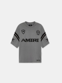 FOR PRE-SPRING 2026, MESH JERSEYS WITH LANGUID FITS CAPTURE THE EFFORTLESS ATTITUDE OF THE OFF-DUTY ATHLETE. THE SKATE TEE AMIRI OVERSIZED SPORT TEE IS CRAFTED IN KNIT MESH AND FINISHED WITH CONTRAST PIPING AND SEASONAL LOGO EMBROIDERY. PRE-SPRING 2026 COLLECTION MADE IN ITALY 100% COTTON THIS GARMENT HAS UNDERGONE A SPECIAL PROCESS WHICH RESULTS IN INTENTIONAL VARIATIONS OF SHADING AND COLOR, AND ADD TO THE PIECE'S UNIQUE CHARACTERISTICS. THIS MAY LEAD TO BLEEDING OR DYE TRANSFER. PLEASE USE CAUTION WHEN WASHING OR DRY-CLEANING THIS ITEM STYLE:AMTOJR1124-080 SIZE & FIT MODEL MEASUREMENTS: HEIGHT: 6’1" CHEST: 36" WAIST: 27" HIP: 34.5" PRODUCT MEASUREMENTS (SIZE M): CHEST: 23.5" SHOULDER: 23.5" LENGTH: 29" SLEEVE LENGTH: 9.5"