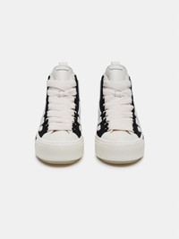 FOR PRE-FALL 2025, THE HOUSE'S SIGNATURE BONES MOTIF ENHANCES THE RETRO-INSPIRED COURT SILHOUETTE. THE SKEL COURT HI SNEAKER IS SET ON A MOLDED RUBBER OUTSOLE WITH A CANVAS UPPER AND LEATHER BONE APPLIQUES. PRE-FALL 2025 COLLECTION MADE IN VIETNAM UPPER: 100% COTTON CANVAS. SOLE: RUBBER EACH PIECE IS METICULOUSLY CRAFTED AND INHERENTLY UNIQUE. SLIGHT VARIATIONS IN THE ARTWORK ARE A NATURAL RESULT OF THE PRINTING PROCESS AND CONTRIBUTE TO THE DISTINCTIVE CHARACTER OF THIS PRODUCT. STYLE:AMFOSR1149-001