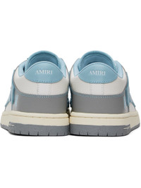 Low-top buffed and grained leather sneakers in blue, gray, and white. · Perforations at toe · Logo patch at padded tongue · Padded collar · Logo printed at outer side · Graphic appliques at sides · Logo embossed at heel tab · Mesh lining · Logo embossed at rubber midsole · Treaded rubber sole Supplier color: Ocean sky Upper: leather. Sole: rubber. Made in Viet Nam 251886M237007
