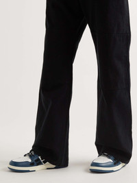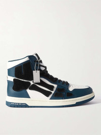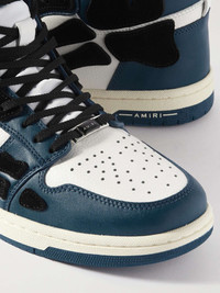AMIRI has turned its best-selling 'Skel Toe' slip-ons into high-top sneakers. Designed with the same hand-cut appliqués along the sidewalls, this pair is made from colour-block leather and suede and has comfortable padded collars. Size & Fit - Fits true to size. Take your normal size - Only available in full sizes, go up to the nearest whole size if you take a half size - European sizing Details & Care - Navy and white leather, black suede (Cow) - Lace-up - Style number: AW22MFS002-410 - This item has been imported