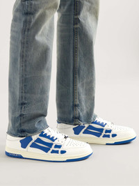 AMIRI has turned its best-selling 'Skel Toe' slip-ons into low-top sneakers. Designed with the same hand-cut appliqués along the sidewalls, this pair is made from colour-block leather and has comfortable padded collars. Size & Fit - Fits true to size. Take your normal size - Only available in full sizes, go up to the nearest whole size if you take a half size - European sizing Details & Care - White and blue leather (Calf) - Lace-up - Style number: PS22MFS003-123 - This item has been imported