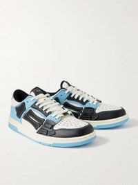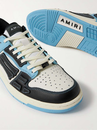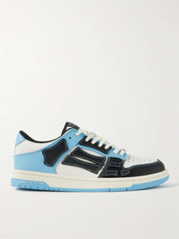 AMIRI has turned its best-selling 'Skel Toe' slip-ons into low-top sneakers. Designed with the same hand-cut appliqués along the sidewalls, this colour-blocked pair is made from leather and has comfortable padded collars. Size & Fit - Fits true to size. Take your normal size - Only available in full sizes, go up to the nearest whole size if you take a half size - European sizing Details & Care - White, light-blue and black leather (Cow) - Lace-up - Designer colour: Air Blue - Come with dust bag - Style number: PS24MFS004