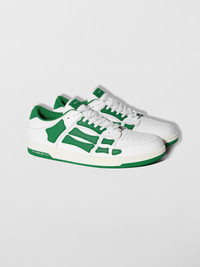 HAND CUT AND EDGE PAINTED LEATHER BONES APPLIQUé GENUINE LEATHER UPPER MOLDED EVA FOOTBED MADE IN CHINA SMOOTH PEBBLED LEATHER WITH NYLON FITS TRUE TO SIZE. ORDER YOUR NATURAL SIZE. ONLY AVAILABLE IN FULL SIZES. CHOOSE YOUR NEAREST WHOLE SIZE IF YOU WEAR A HALF SIZE DETAILS & CARE ATHLETIC MESH LINING VULCANIZED RUBBER OUTSOLE WASH WITH GENTLE FOOTWEAR SOAP. DO NOT MACHINE WASH 100% LE, 100% RUBBER