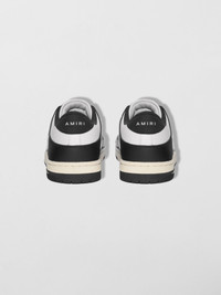 SKEL TOP LOW IN BLACK AND WHITE SMOOTH/PEBBLED LEATHER W/NYLON 100% LE, 100% RUBBER DRY CLEAN RECOMMENDED