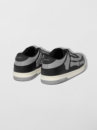 HAND CUT AND EDGE PAINTED LEATHER BONES APPLIQUé GENUINE LEATHER UPPER MOLDED EVA FOOTBED MADE IN CHINA SMOOTH PEBBLED LEATHER WITH NYLON FITS TRUE TO SIZE. ORDER YOUR NATURAL SIZE. ONLY AVAILABLE IN FULL SIZES. CHOOSE YOUR NEAREST WHOLE SIZE IF YOU WEAR A HALF SIZE DETAILS & CARE ATHLETIC MESH LINING VULCANIZED RUBBER OUTSOLE WASH WITH GENTLE FOOTWEAR SOAP. DO NOT MACHINE WASH 100% LE, 100% RUBBER