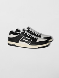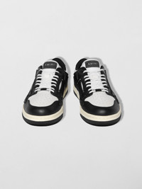 PF22 COLLECTION LOW TOP LEATHER SNEAKER. FEATURING HAND CUT AND EDGE PAINTED BONES APPLIQUÉ. MOLDED EVA FOOTBED SMOOTH PEBBLED LEATHER WITH NYLON FITS TRUE TO SIZE. ORDER YOUR NATURAL SIZE ONLY AVAILABLE IN FULL SIZES. CHOOSE YOUR NEAREST WHOLE SIZE IF YOU WEAR A HALF SIZE DETAILS & CARE ATHLETIC MESH LINING VULCANIZED RUBBER OUTSOLE WASH WITH GENTLE FOOTWEAR SOAP. DO NOT MACHINE WASH 100% LE, 100% RUBBER