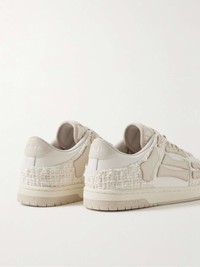 AMIRI has turned its best-selling 'Skel Toe' slip-ons into low-top sneakers. Designed with the same hand-cut appliqués along the sidewalls, this pair is made from a mix of metallic bouclé and leather and has comfortable padded collars. Size & Fit - Fits true to size. Take your normal size - Only available in full sizes, go up to the nearest whole size if you take a half size - European sizing Details & Care - Beige, off-white and silver bouclé, beige and off-white leather - Lace-up - Designer colour: Alabaster - Come with dust bag - Style number: AMFOSR1008