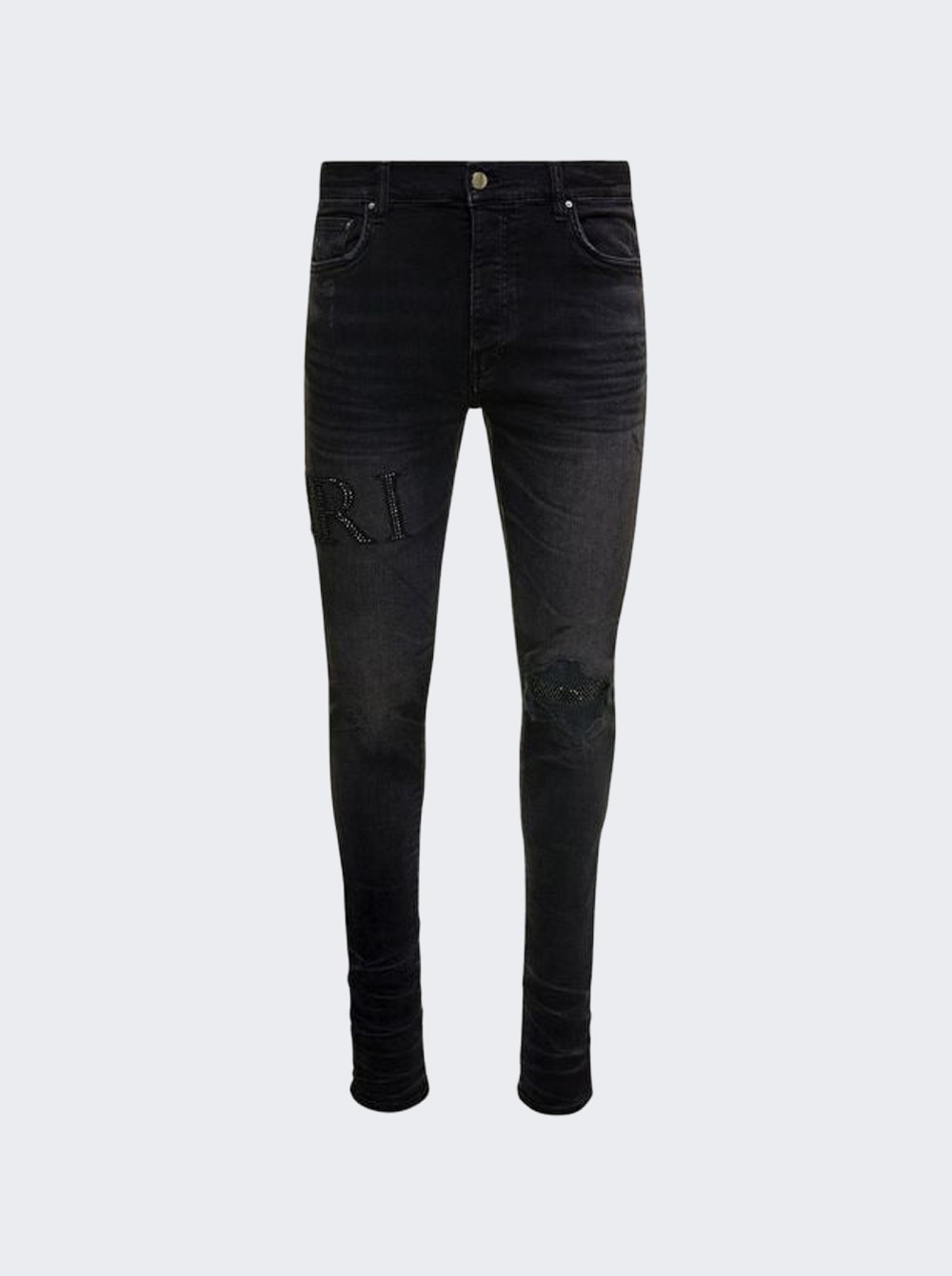 Details - Stretch-cotton denim - Bleach wash - Slim Cut - Logo patch at the rear - Crystal embellishment - Concealed fly and button fastening - Classic five pockets Dimensions: Model is 6'1"/185cm and is wearing a size US32 Composition: 92% cotton, 6% polyester, 2% elastane Care: care according to label Brand Style: PF23MDS015 Designer/Brand: AMIRI