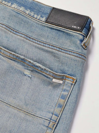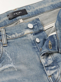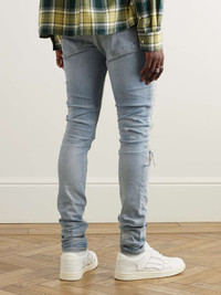Mike Amiri started out customising jeans for rock 'n' roll legends like Axl Rose and Steven Tyler back in 2014. Channelling the same spirit, this pair is cut for a signature skinny fit and detailed with cool ripped panels on the legs. Wear yours with sneakers or Cuban boots. Small to size. See Size & Fit notes. Size & Fit - Fits small to size. Take one size larger than normal - Skinny leg, mid-rise style - Mid-weight, slightly stretchy fabric - Model is shown wearing a 32 - Model measures: waist size 30, height 6'2"/ 188cm Details & Care - Tonal-blue stretch-denim - Button fastenings - 100% cotton - 92% cotton, 6% elastomultiester, 2% elastane - Dry clean