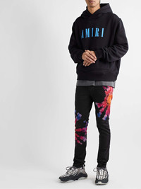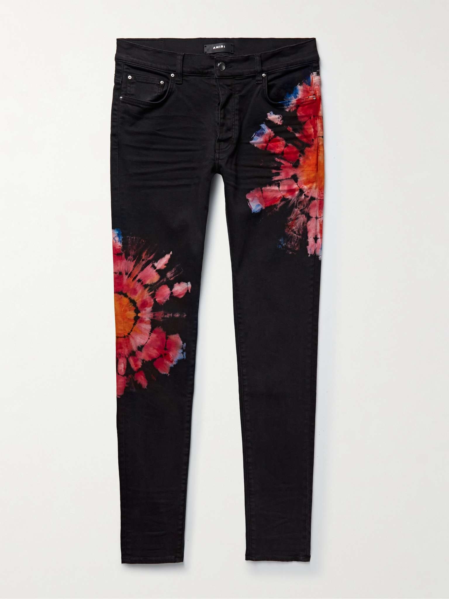 AMIRI's stretch-denim jeans are tie-dyed along the legs in vibrant shades of pink and blue. They're cut in the label's signature skinny fit and have an embroidered monogram at the back pocket. Size & Fit - Fits true to size. Take your normal size - Those with muscular legs may wish to take the next size up - Skinny leg, mid-rise style - Mid-weight, stretchy fabric - Model is shown wearing a 30 - Model measures: waist size 30, height 6'1"/ 185cm Details & Care - Multicoloured stretch-denim - Button fastenings - 92% cotton, 6% elastomultiester, 2% elastane