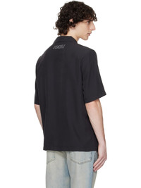 Modal-blend satin shirt. · Open-spread collar · Button closure · Patch pocket · Logo embroidered at chest and back collar Supplier color: Black 60% modal, 40% polyester. Made in Italy 252886M192010
