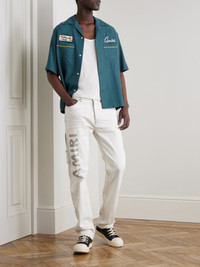 Slim-Fit Straight-Leg Logo-Print Paint-Splattered Jeans Blue