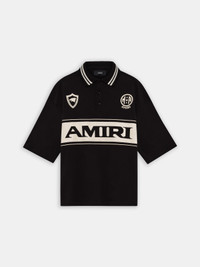 FOR PRE-SPRING 2026, MOTIFS ARE ADAPTED FROM '80S SPORTSWEAR CLASSICS, FORMING NOVEL RENDITIONS OF THE HOUSE LOGO. THE AMIRI SPORT OVERSIZED POLO IS DESIGNED IN A RELAXED FIT AND FINISHED WITH A RIB KNIT COLLAR AND THREE-BUTTON CLOSURE. PRE-SPRING 2026 COLLECTION MADE IN ITALY 100% COTTON THIS GARMENT HAS UNDERGONE A SPECIAL PROCESS WHICH RESULTS IN INTENTIONAL VARIATIONS OF SHADING AND COLOR, AND ADD TO THE PIECE'S UNIQUE CHARACTERISTICS. THIS MAY LEAD TO BLEEDING OR DYE TRANSFER. PLEASE USE CAUTION WHEN WASHING OR DRY-CLEANING THIS ITEM STYLE:AMTOJR1003-001 SIZE & FIT MODEL MEASUREMENTS: HEIGHT: 6'2" CHEST: 38.5" WAIST: 30.5" HIP: 37.5" PRODUCT MEASUREMENTS (SIZE M): CHEST: 25" SHOULDER: 24" LENGTH: 31.5" SLEEVE LENGTH: 13"