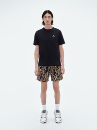 THE SEASON’S STACKED LOGO OVERLAPS AND COLLIDES ON THESE SWIM SHORTS. DESIGNED WITH AN ADJUSTABLE DRAWCORD FOR EASE IN WEAR, THESE TRUNKS ARE IDEAL FOR WEARING AT THE BEACH OR POOLSIDE.
