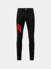 STAGGERED LOGO SKINNY JEAN- Black Red