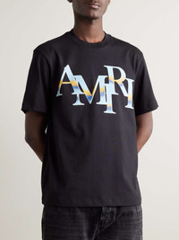 Amiri's SoCal cool comes to the fore in this tee. It's cut for a boxy fit from heavyweight cotton-jersey and printed with a staggered moniker at the front. Size & Fit - Fits true to size. Take your normal size - Designed for a boxy fit - Mid-weight, stretchy fabric - Model is shown wearing a M - Model measures: chest 38"/ 96cm, height 6'2"/ 188cm Details & Care - Black, tonal-blue and mustard cotton-jersey - 100% cotton - Dry clean