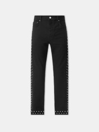 FOR AUTUMN-WINTER 2024 MENSWEAR, DENIM BECOMES A CANVAS FOR INTRICATE AND NOVEL FABRICATION. THE STAR CRYSTAL SLIM JEAN IS EMBELLISHED WITH STAR CRYSTALS ALONG EACH SIDE AND AT ANKLES AND IS FINISHED WITH CLASSIC FIVE-POCKET CONSTRUCTION. AUTUMN-WINTER 2024 COLLECTION MADE IN USA 98% COTTON, 2% ELASTANE
