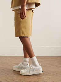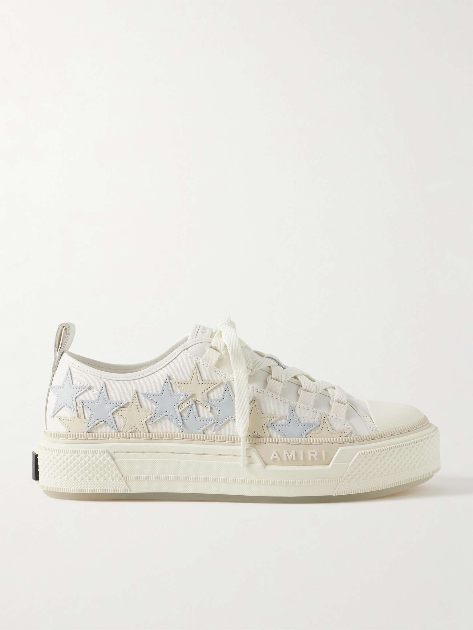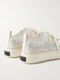 AMIRI's 'Court' sneakers are defined by sporty cap toes and double-stacked, moulded rubber soles. This version is made from 'Alabaster' canvas and detailed with a constellation of neutral-toned leather 'Stars'. Check out our edit for the high-top version and coordinating jeans. Size & Fit - Fits true to size. Take your normal size - Only available in full sizes, go up to the nearest whole size if you take a half size - European sizing Details & Care - Off-white canvas, beige and light-grey leather, cream rubber - Lace-up - Designer colour: Alabaster - Come with a dust bag - Style number: PS24MFS013