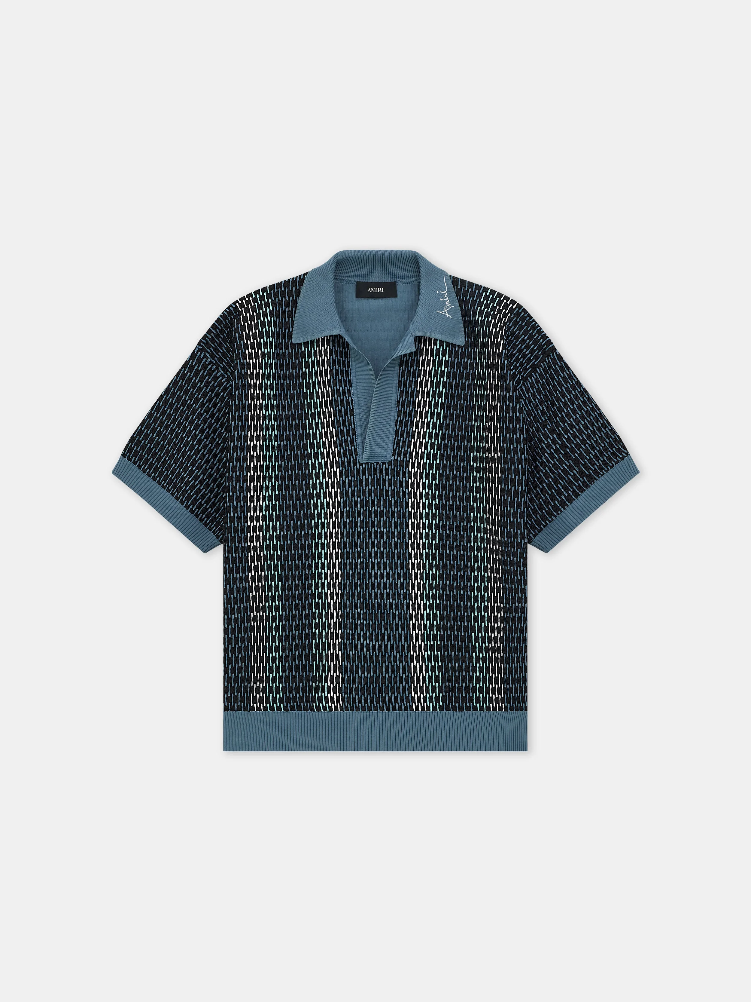 SPRING-SUMMER 2026 INTRODUCES OVERSIZED KNITWEAR SILHOUETTES ENHANCED BY HOUSE ICONOGRAPHY. THE STRIPED POLO IS DESIGNED IN A RELAXED FIT WITH CONTRAST RIB KNIT FINISHES, MA ICON HARDWEAR, AND THE EMBROIDERED HOUSE LOGO AT THE COLLAR. SPRING-SUMMER 2026 COLLECTION MADE IN ITALY 100% VISCOSE THIS GARMENT HAS UNDERGONE A SPECIAL PROCESS WHICH RESULTS IN INTENTIONAL VARIATIONS OF SHADING AND COLOR, AND ADD TO THE PIECE'S UNIQUE CHARACTERISTICS. THIS MAY LEAD TO BLEEDING OR DYE TRANSFER. PLEASE USE CAUTION WHEN WASHING OR DRY-CLEANING THIS ITEM STYLE:AMTOKN1059-420 SIZE & FIT MODEL MEASUREMENTS: HEIGHT: 6'2" CHEST: 33.5" WAIST: 28.5" HIP: 36" PRODUCT MEASUREMENTS (SIZE M): CHEST: 23.5" SHOULDER: 24" LENGTH: 29" SLEEVE LENGTH: 9.5"