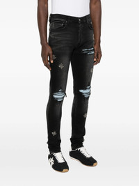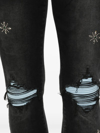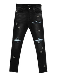 black distressed detailing five pockets belt loops top button fastening - Color: BLACK - Made in: United States - Designer Style ID: AMBMJE1002 VINBK Composition and care Cotton: 92.0%, Polyester: 70.0%, Polyurethane: 30.0%, Spandex/elastane: 2.0%, Elastomultiester: 6.0%