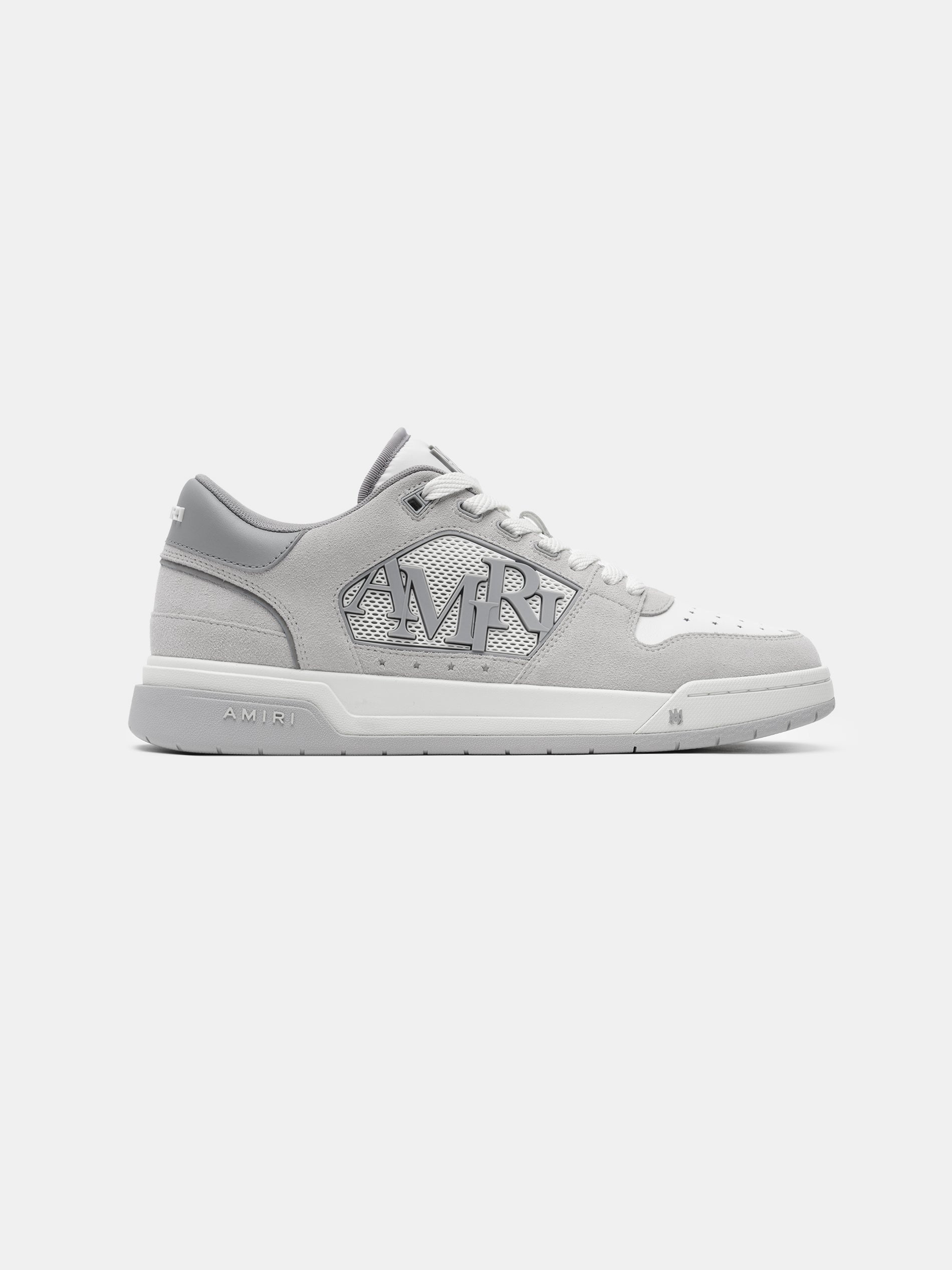 PRE-FALL 2024 PRESENTS THE HOUSE'S INTERPRETATION OF THE TIMELESS TENNIS SNEAKER IN NEW SEASONAL FABRICATIONS. THE SUEDE CLASSIC LOW IS CRAFTED ON A TWO-TONE RUBBER SOLE WITH SUEDE UPPER AND CENTRAL PANELS OF MOLDED RUBBER MESH FRAMING THE AMIRI STAGGERED LOGO. PRE-FALL 2024 COLLECTION MADE IN VIETNAM UPPER: LEATHER/TETORON, SOLE: RUBBER