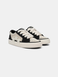 THE PRE-FALL 2024 COLLECTION INTRODUCES THE SUNSET SKATE LOW, A NEW HOUSE ICON THAT EMBODIES THE SPIRIT OF VENICE BEACH SKATE CULTURE. THE SILHOUETTE IS CRAFTED WITH A VULCANIZED RUBBER SOLE, A PANELED SUEDE UPPER, LEATHER STAR APPLIQUES, WIDE LACES, AND THE HOUSE'S SIGNATURE STAR PERFORATIONS AT TOE. PRE-FALL 2024 COLLECTION MADE IN CAMBODIA UPPER: 100% LEATHER, SOLE: 100% RUBBER STYLE:AMFOSR1045-071