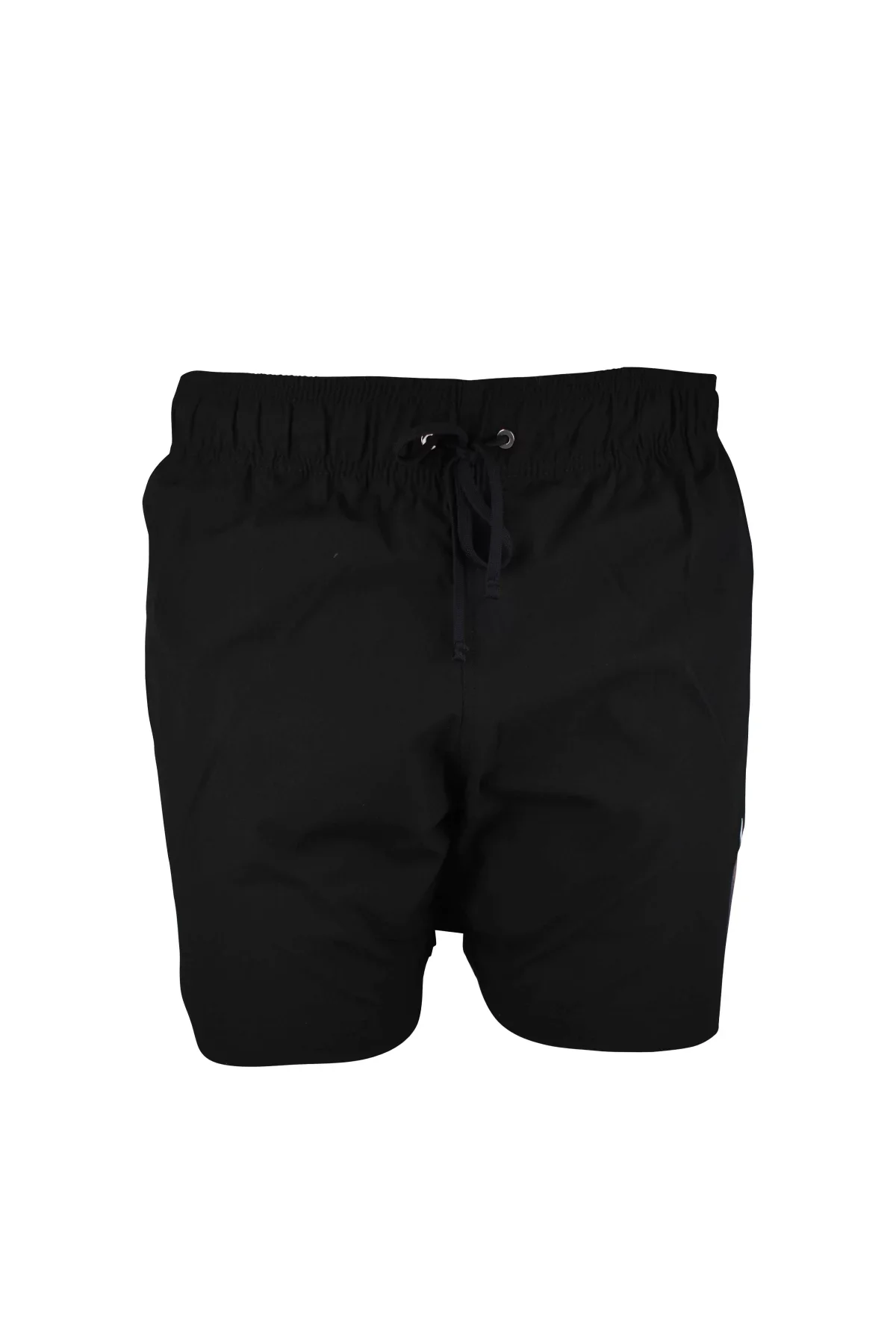 Black Amiri polyester and elastane swim shorts. White Amiri logo printed on front. Multicolored "MA" logos with flowing effect printed on front. Elastic waist. Side pockets. One back pocket with scratch closure. Black logo patch on back.