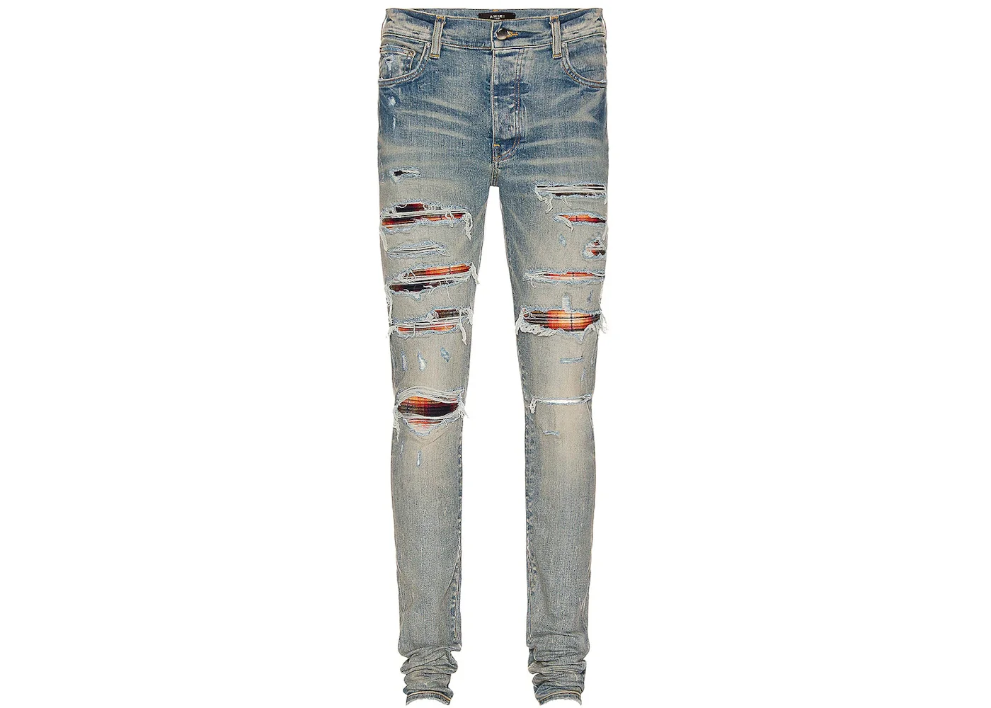 AMIRI Plaid Trasher Skinny Fit Jeans Blue
