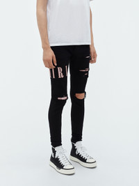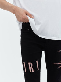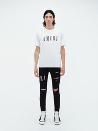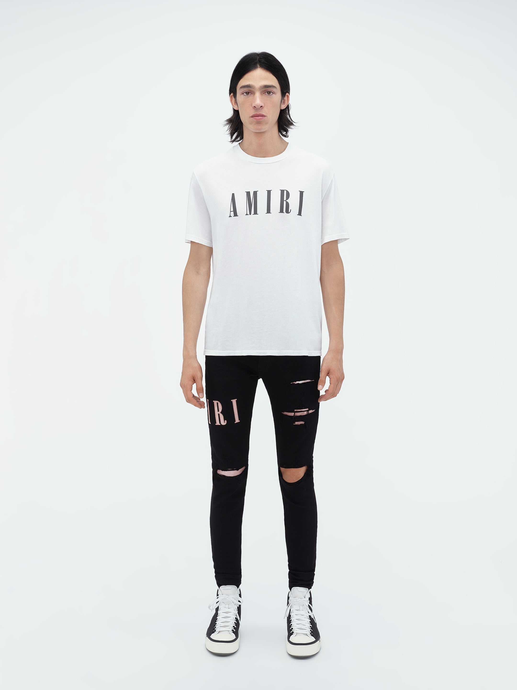 FABRIC TIE-DYED IN A SUNSET PALETTE ADDS CONTRAST TO THESE SKINNY-FIT JEANS IN STRETCH ITALIAN DENIM. APPEARING AS THE CORE AMIRI LOGO, PATCHES ARE APPLIQUÉD UPON JEANS THAT HAVE BEEN ARTFULLY WASHED, DESTROYED AND PATCHED IN THE SPIRIT OF WELL-WORN VINTAGE. THESE JEANS ARE FINISHED WITH CLASSIC FIVE-POCKET CONSTRUCTION AND PAIR SEAMLESSLY WITH THE SEASON'S KNIT AND TEE OFFERINGS. SPRING-SUMMER 2024 COLLECTION MADE IN USA 92% COTTON, 6% ELASTOMULTIESTER, 2% ELASTANE DRY CLEAN