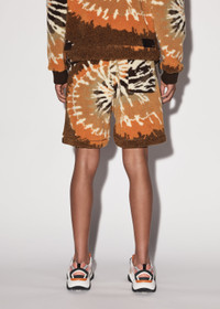 RELAXED POLAR FLEECE SHORTS AMIRI TIE DYE PRINT MADE IN ITALY CLASSIC RELAXED FIT MODEL IS 6'2" AND WEARS A SIZE MEDIUM DETAILS & CARE ADJUSTABLE DRAWSTRING DETAIL ON WAIST TIE DYE POLAR FLEECE DRY CLEAN RECOMMENDED