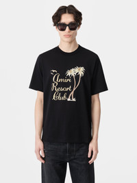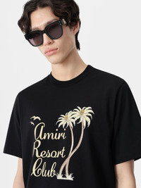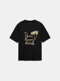 FOR PRE-FALL 2024 MENSWEAR, THE AMIRI RESORT CLUB IS INTRODUCED AS A FICTIONALIZED FIVE-STAR DESTINATION SET AMID TROPICAL PALM TREES. THE AMIRI TWISTED PALMS TEE IS ILLUMINATED WITH METALLIC LUREX EMBROIDERY. PRE-FALL 2024 COLLECTION MADE IN ITALY 100% COTTON
